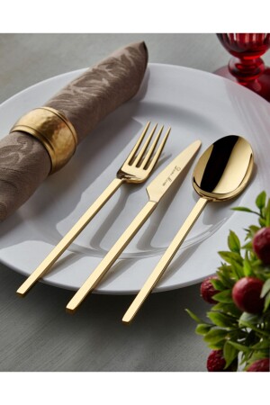 منز-1مجودة التيتانيوم الذهب Çkb42 المجموعة المكونة: 6 ملعقة عشاء، 6 شوكة عشاء، 6 سكاكين عشاء، 6 شوكة حلو