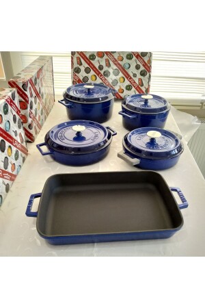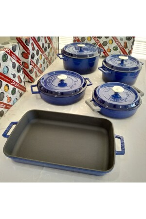 MNZ-Cast Iron 5 Piece Pot و Pan Set عصرية الأزرق 195511651515615