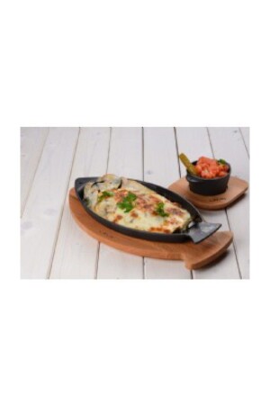 MNZ-Cast Iron Fish Plate Cast Iron Solid Beech Serving Wood مع أبعاد المقبض 15x24 سم. LV ECO BT 1524 T8 K4