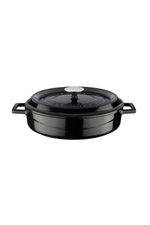 MNZ-Cast Iron Multi-Purpose Flat Pot Diameter (Ø) 28 سم - شديد الاهتمام باللون الأسود LV Y ST 28 K2 BL