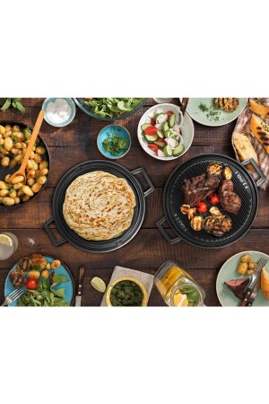MNZ-Cast Iron Pancake وFlatbread Pan قطر مضاعف الجانب Ø 28 سم 111LVECOGT28T25