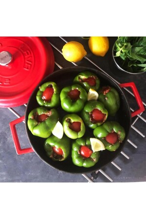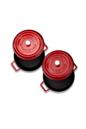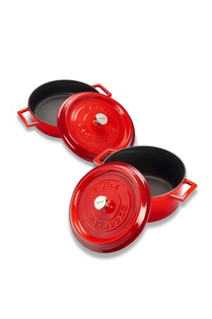 MNZ-Cast Iron Round عميق وضحل 5 قطع طباخات مجموعة حمراء LV Y TSC K2 SET
