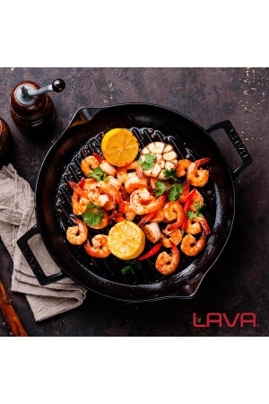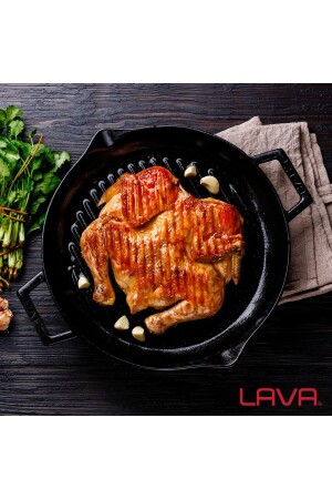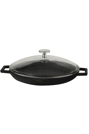 MNZ-Cast Iron Round Grill Pan مع غطاء زجاجي معدني معدني صلب مع مسافة مسافة مسافة (Ø) 30cm. LV ECO GT 30 T5 K3
