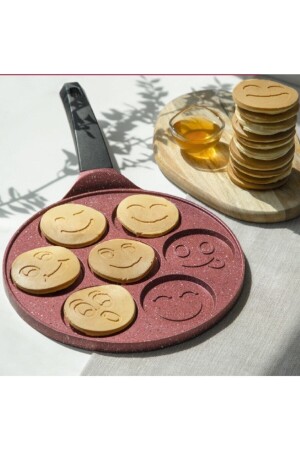 MNZ-Cast Iron Smile Crepe Pancake Pan Claret Red 27 سم و455