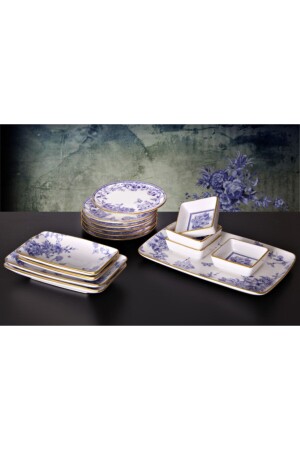 Çiğdem Blue Model 12 Kişilik 21 Parça Kahvaltı Takımı Kahvaltı Seti[ Mavi 12]