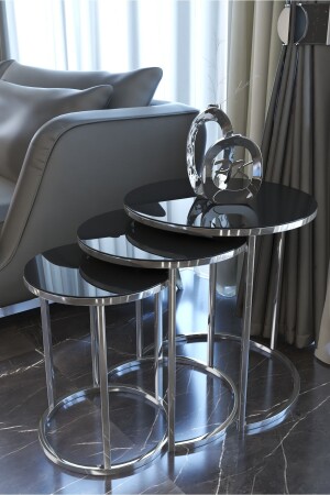 MNZ-Ceylin 3 مقاعد طاولة قهوة مستوى الفضة لون المعدن ساق، المرآة السوداء PukkaZigon