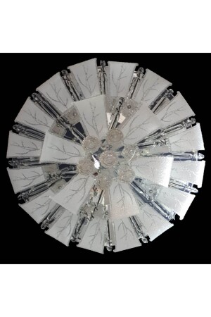 ارتفاع: 30 سم قطر: 60 لون: كروم ورقة لا زجاج ، زجاج مزجج أبيض المادة: فولاذ فولاذ 22 قطعة زجاج مدمر 14 ق شمع