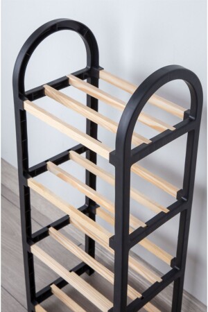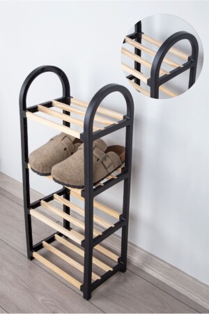 MNZ-Chawood Mini 4 شقق شاحنة أحذية سوداء شاحنة أحذية خشبية صلبة وحدة رف الأحذية الخشبية مع عصا خشبية