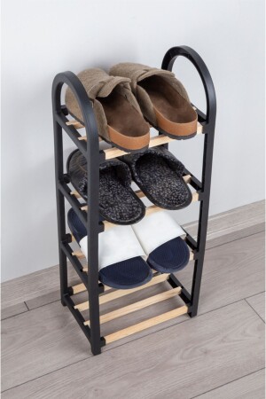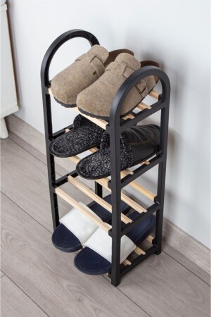 مرف أحذية من نوع MNZ-Chawood 4 شقق ذات عصا خشبية وحدة رف أحذية خشبية صلبة - اليدين البلاستيكية - أربعة طب