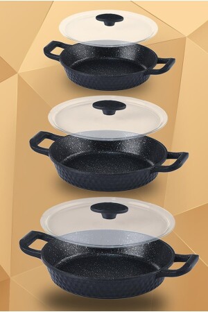 MNZ-Chef Iron Cast Granite Omelette بيض مع غطاء وعباء مجموعة 16-18-20 سم مجموعة MUBA- شيف بولو