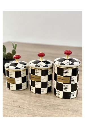 MNZ-Luxury Enamel Makenzi 3-piece Jar 3 مقاسات إمايل وعاء متعدد الأغراض حجم كبير قطر 11.5 سم / 21 سم ارتفاع بما في ذلك الغطاء حجم متوسط