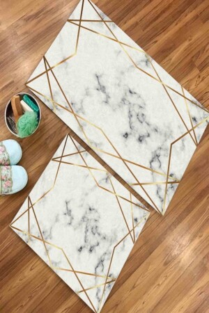 MNZ-Chessboard Stripped Marble Patterned 2-piece Bathroom Carpet Set (40x60/60x100) - Wly200 WLY200