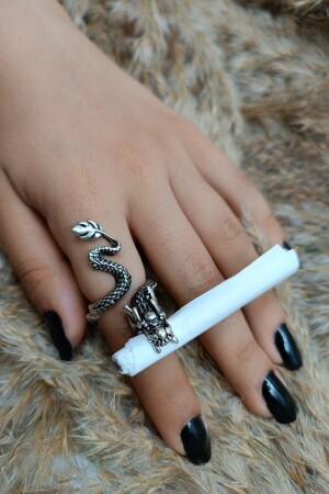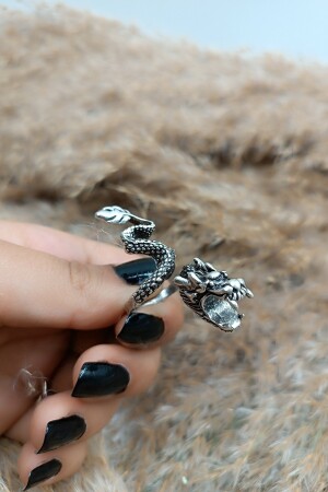 MNZ-Cigarette Holding Dragon Model قديم القديم الخاتم المعدل المعدل بالفضة