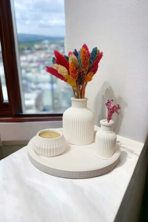 MNZ-Circle Plate Stripped Vase Mini Stripped Vase Stripped Tealight Candle Holder Set of 4 Gift Raw White