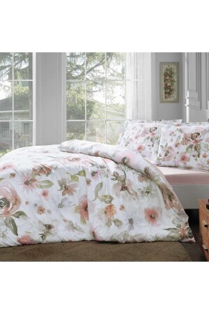 غطاء ساطن ساطن من القطن من طراز MNZ-TAÇ Taç Set Clara Salmon Thread Double Cotton Satin Duvet Cover 200x220 شلة سرير 230x260 وس
