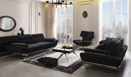 MNZ-Clara Gold - مجموعة الأريكة السوداء
