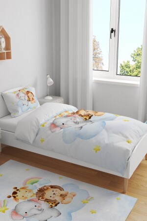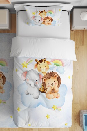 MNZ-Cloudy Lion Giraffe الفيل الأصدقاء نمط واحد الأطفال السرير مجموعة evnev00143