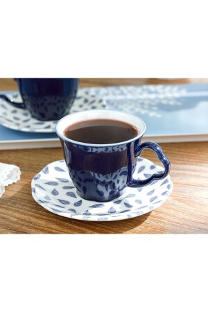 MNZ-Clover ورقة البورسلين كوب شاي لـ 2 أشخاص 180 مل أبيض - أزرق