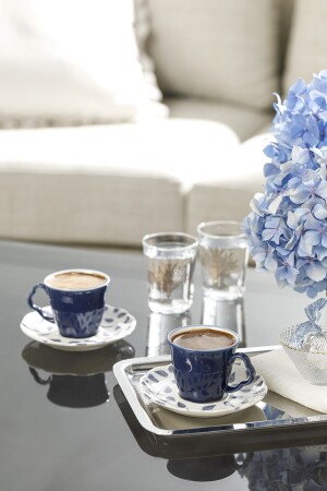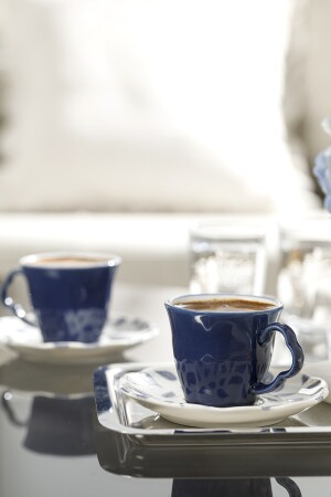 MNZ-Clover Leaf Porcelain Set من كوبين قهوة 80 مل أبيض - أزرق 10032334