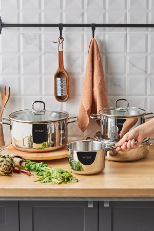 MNZ-Emsan Cocinero 7 قطع طازجة معدنية المعدات المعدة: 18/10 304 مجموعة معدنية محتويات 18 سم طازجة عميقة (2.2 لتر) 22 سم ط