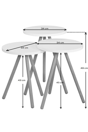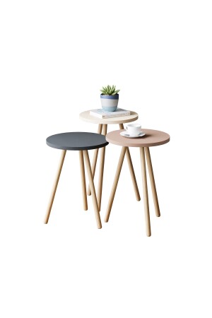 MNZ-Colorful Triple Nesting Coffee Table ساقي الخشبية الدائري تصميم البستيل الرمادي كريم كابوتشينو BAHARYURVALAK