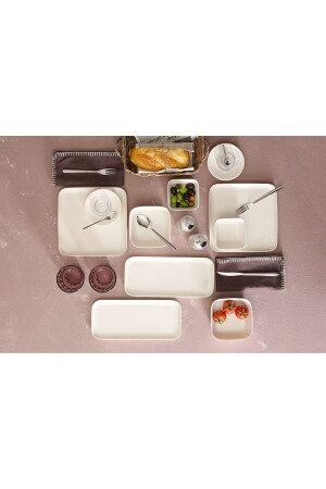 64 Parça 12 Kişilik Platin Modern Krem Kahvaltı Takımı