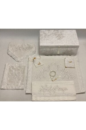 3 ADET Fransız Güpürlü İşlemeli Kadife Çeyizlik Gelin Seti Seccadesi
