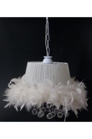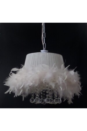 MNZ-CREAM Feather Stone CANDELIER WITH CREAM TULLE فابريكي CANDELIER Bottom Width: 30 سم ارتفاع 50 سم مع جهاز شنق معدني