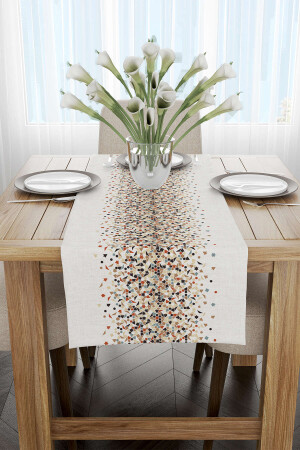 40x140cm Dokuma Leke Tutmaz Baskılı Premium Tay Tüyü Kumaş Masa Örtüsü Dekoratif Runner Yıkanabilir
