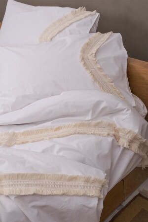 MNZ-Cream Tassel White 100% Cotton Double Duvet Cover and Pillow Set ONVR200