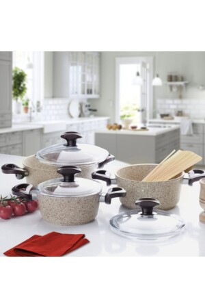 مـنـز مـايا 7 قطع غرانيت طباخات طباخات طبيعات ذهبية