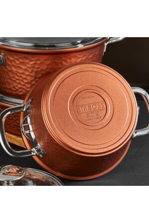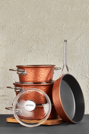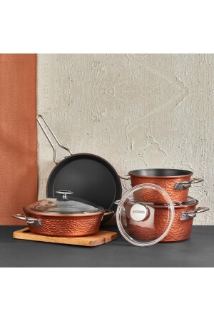 مجموعة طباخ الحديد النحاسي المعدنية 7 قطع ميزة مقاومة للوقود النحاسية غطاء التيتانيوم مع غطاء الزجاج 2 سنوات ضمان مقاوم