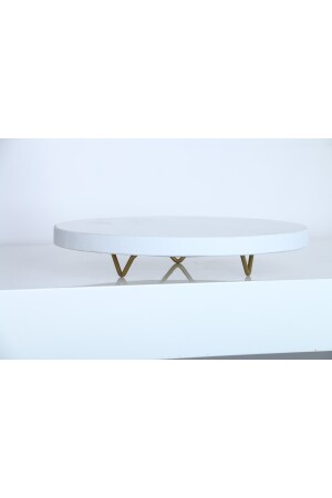 MNZ-Natural Calacatta Marble Round Tray مع معقب ذهبية MRM0128