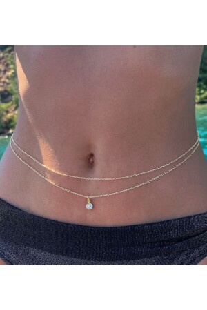 MNZ-Tarnishable 2 قطع ذهبية لون ليني سلسلة الخصر وجواهر الجسم - رقبة الخصر