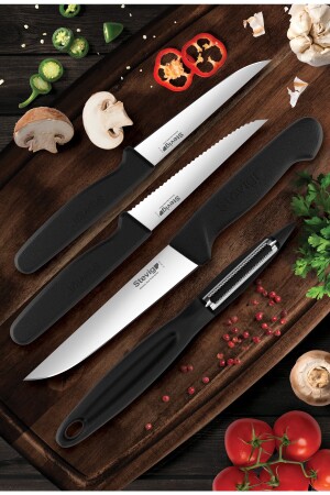 MNZ-Cut 4 خضار طازجة وقطعة سكين 4 قطع سوداء St-401 1019383. 0001
