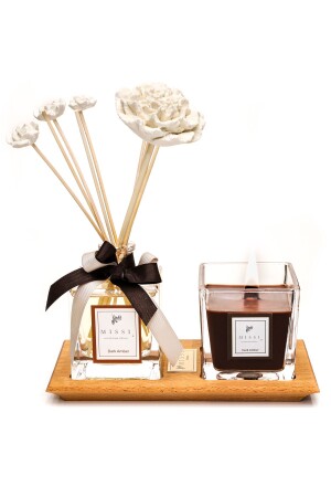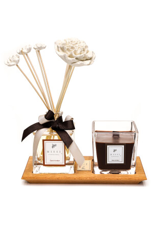 MNZ-Dark Amber Room رائحة وشمعة مع صناديق خشبية صلبة DRKODST3