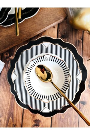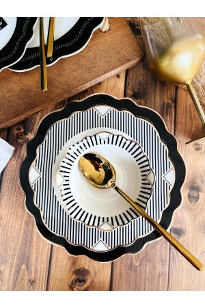 مادة MNZ: اللون البورسلين العظم: الأسود 6 لوحات خدمة 27 سم 6 قطع لوحات الطعام الخفيفة 23 سم 6 لوحات الكعك 21 سم 6 أكواب الحساء 16 سم