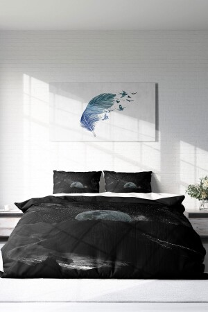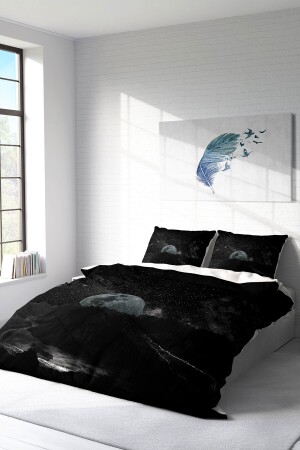 MNZ-MonoHome Dark Moon 3D Cotton Satin Double Duvet Cover Set A Pleasant Touch A Peaceful Sleep 200 سم × 220 سم - خاصة نسي القطن الساتين - الطباعة الرقمية