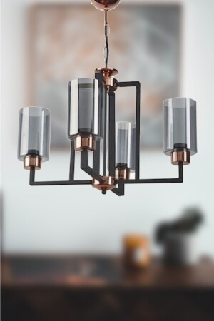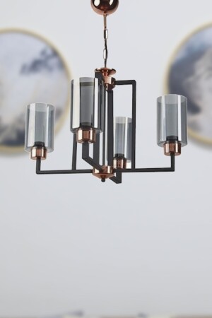 Pare Model Modern Spor Siyah 4'lu Glop Füme Camlı Avize