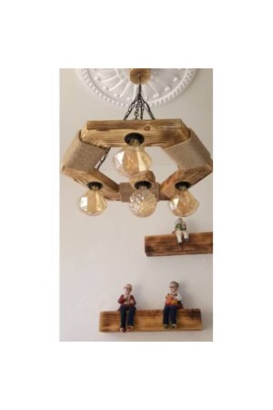 MNZ-Decorative 4-Rope Hexagon مصباح الخشب الفتى القديم الفريد ALS11