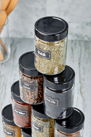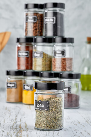 12'li Kapağı Kendinden Kaşıklı Ve Etiketli Baharatlık Seti 300 ml Gold Etiketli Cam Baharat Takımı