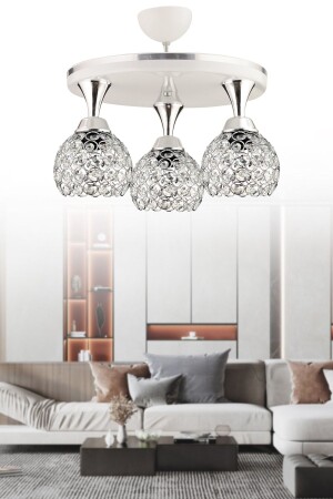 MNZ-Defne 3 قطع محترفة صالون أبيض كروم كريستال كرة فاخرة الشنابل 35 سم 3005