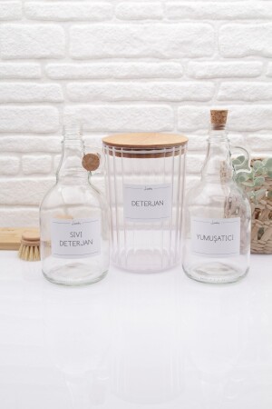 MNZ-Dekorative Oval Stripped Detergent Jar مع غطاء خشبي 2200ML-قنينة المياه المزمنة والمنعجة 1000ML