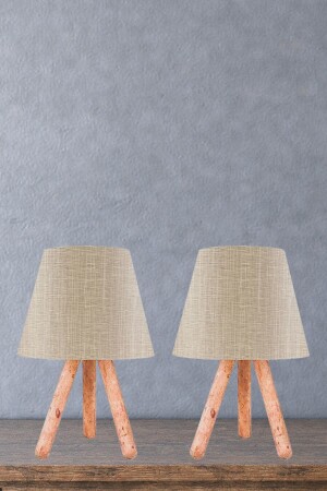MNZ-Design الخشب ثلاثي ساقي شمعة ظل العسل لون كابما النسيج الرأس 2 قطع