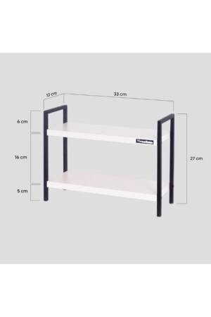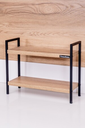 رف منظمة حمام المطبخ من طاولة MNZ-Tabletop مع رفيتين وأرجل معدنية. إنه منتج أنيق ومفيد حيث يمكنك تنظيم العطور والملح والفلفل