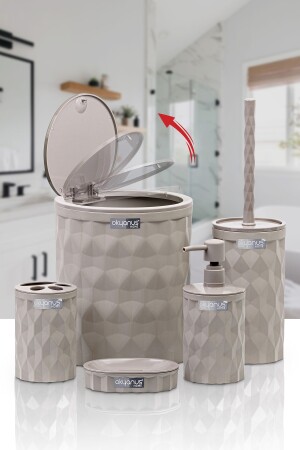 Otomatik Kirli Çamaşır Sepeti Ve 5'li Banyo Seti