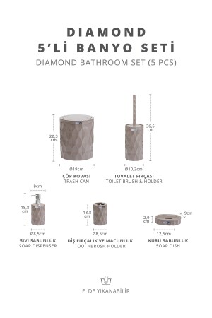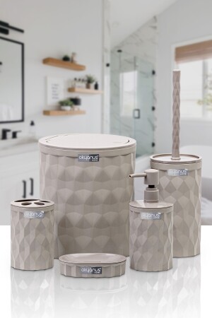 5 Parça Mermer Desen Mat Banyo Seti - Wc Fırçalık- Sıvı - Katı Sabunluk- Çöp Kovası- Diş Fırçalık