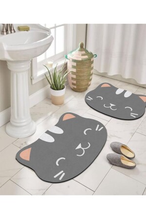 MNZ-Digital Printing Anti-Slip Base Cute Cat Anthracite Bath Mat مجموعة مرحاض مزدوجة (40x60) (60x100)-15 مات-أنثراسيتي15-Grey16