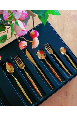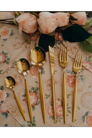 (منيز-دي ام آر) الحياة (فينيسيا) طعام الذهب مجموعة 6 ملعقة طعام، 6 شوكة عشاء، 6 شوكة حلوى 6 شوكة حلوى 6 شوكة