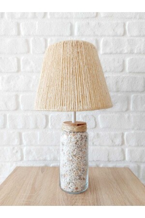 قشرة الشعير MNZ-Lampshade مع قاعدة حجر دولوميت أبيض ، قبعة حبل القنب الطبيعي من جوت و قبعة من النسيج في وعاء ز